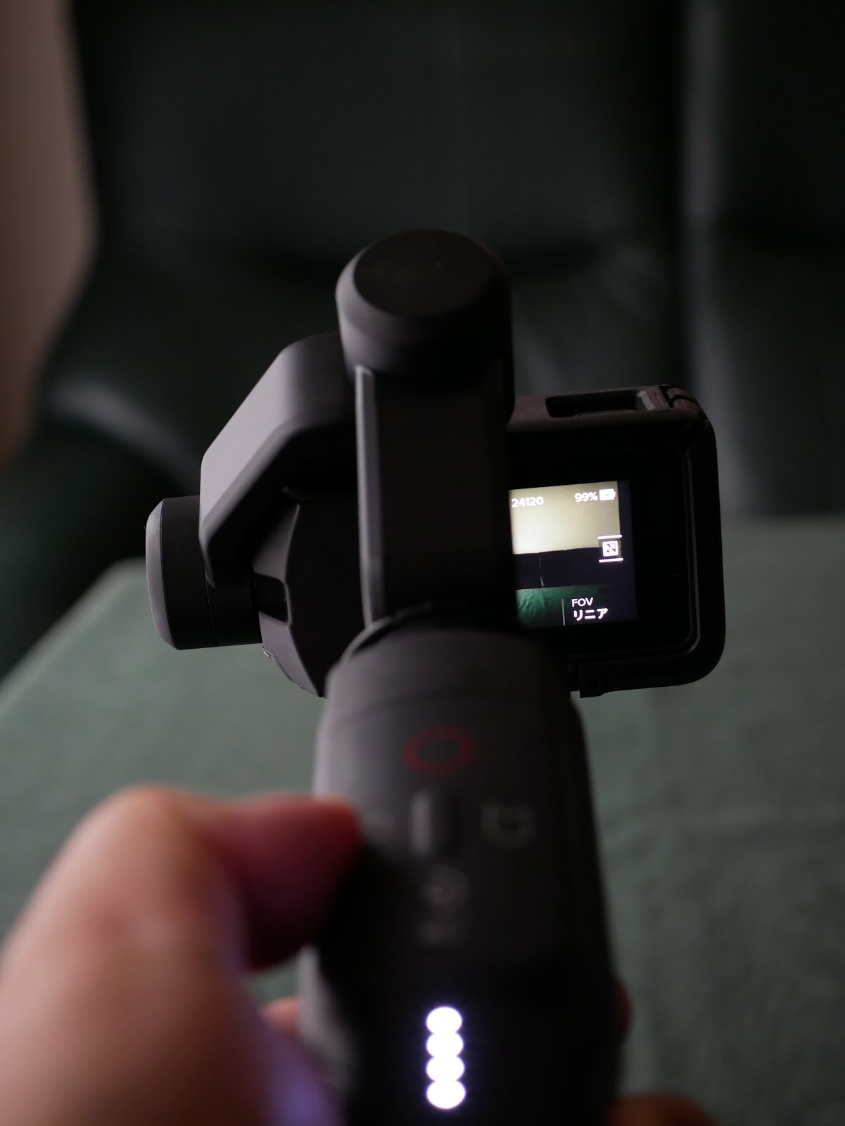 まだ到着したばかりで試行錯誤中だが、気になったのは、利用開始時は満充電を行っても背面の白・赤 LED が点滅して、装着した HERO5 が全くスタビライズされず、ぐにゃりとうなだれたままの状態が続いた事。